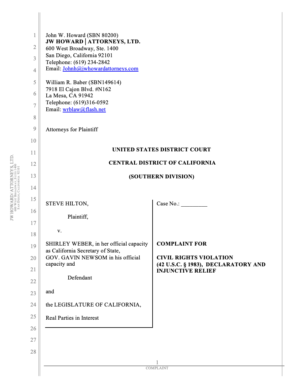 COMPLAINT FOR CIVIL RIGHTS VIOLATION (42 U.S.C. § 1983), DECLARATORY AND INJUNCTIVE RELIEF